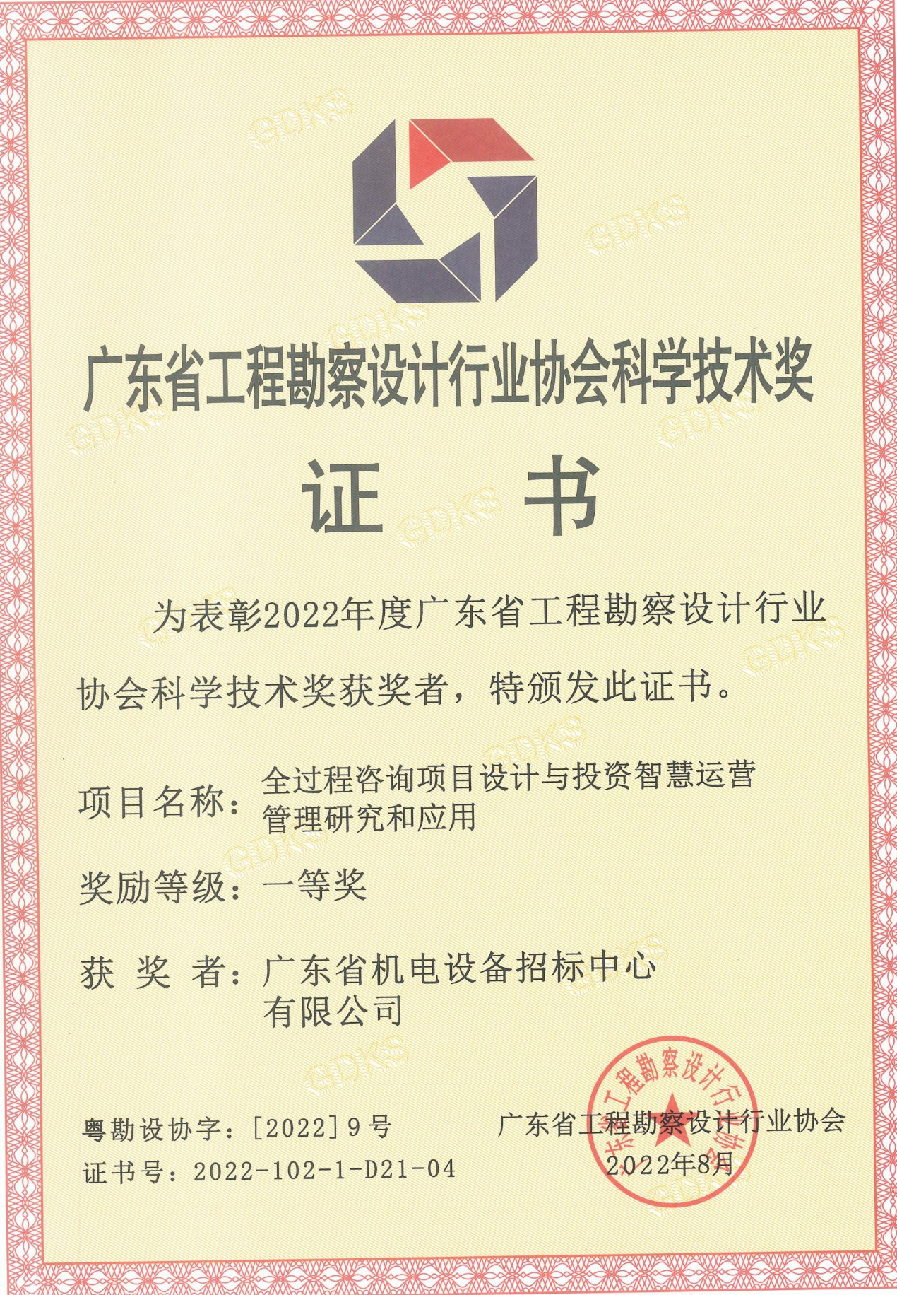 近日,2022年广东省工程勘察设计行业协会科学技术奖评选结果发布,明博电竞手机版(中国)有限公司(以下简称招标中心)参与完成的项目荣获两项一等奖、一项二等奖。