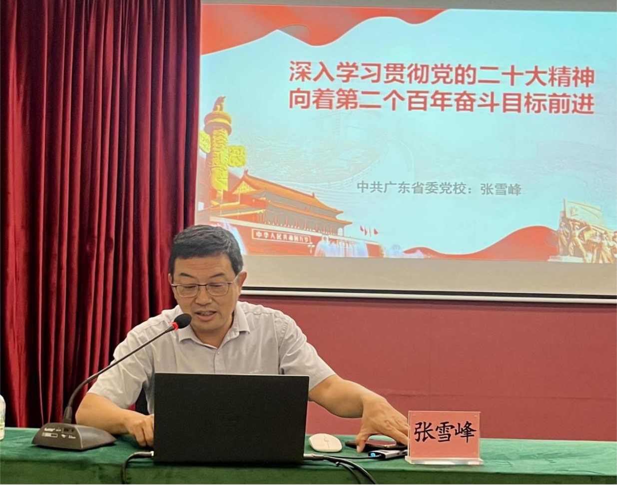 其次,广东省委党校张雪峰教授给所有党员讲授党的二十大精神专题党课。