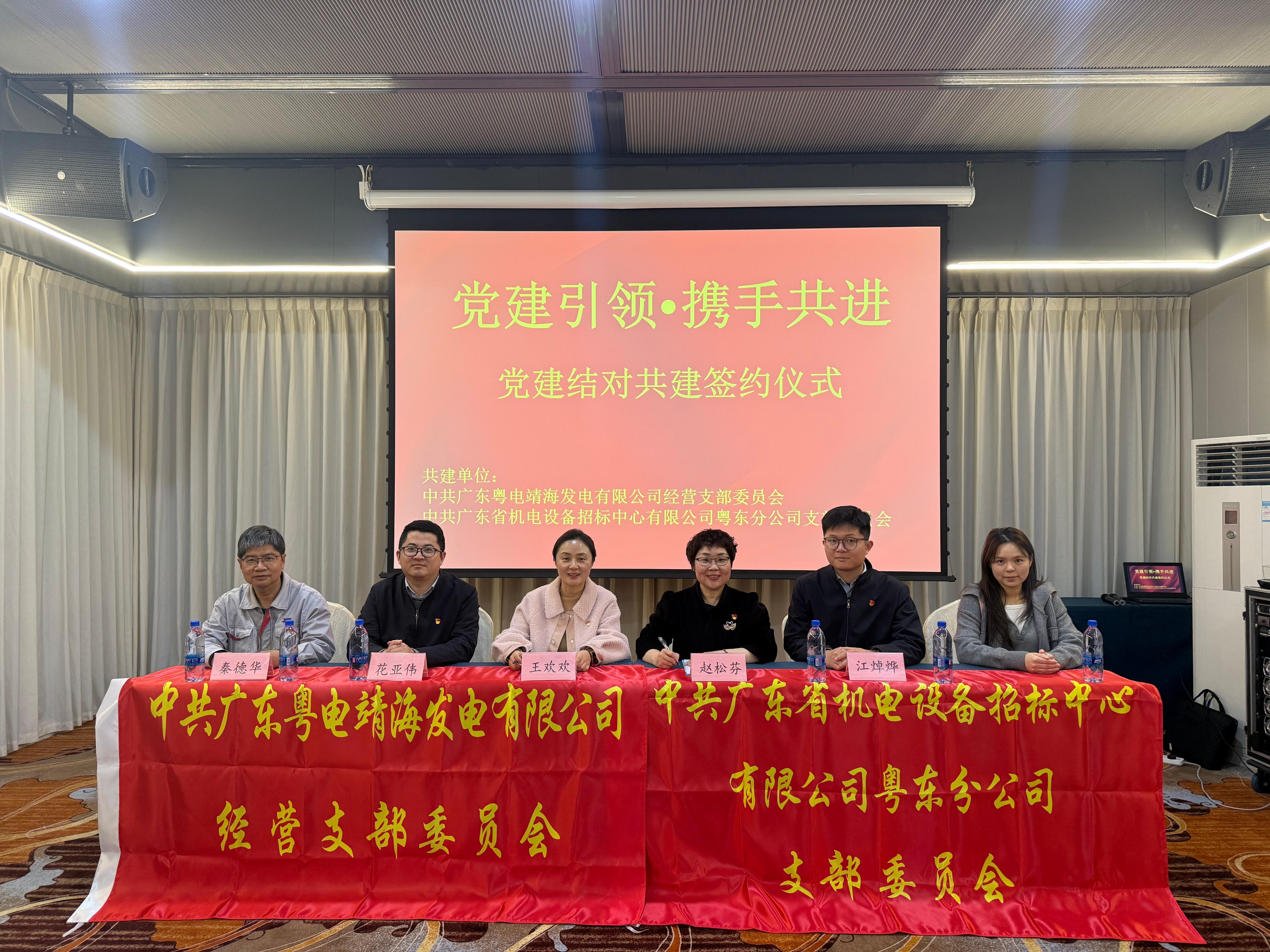 2025年3月18日,明博电竞手机版(中国)有限公司(以下简称“招标中心”)粤东分公司党支部与广东粤电靖海发电有限公司(以下简称“靖海发电公司”)经营党支部共同开展了一场富有意义的党建共建活动,双方于现场签订了三年党建共建协议,旨在加强双方党组织的交流与合作,创新构建“组织共建、合规共治、发展共赢”的协同机制。
