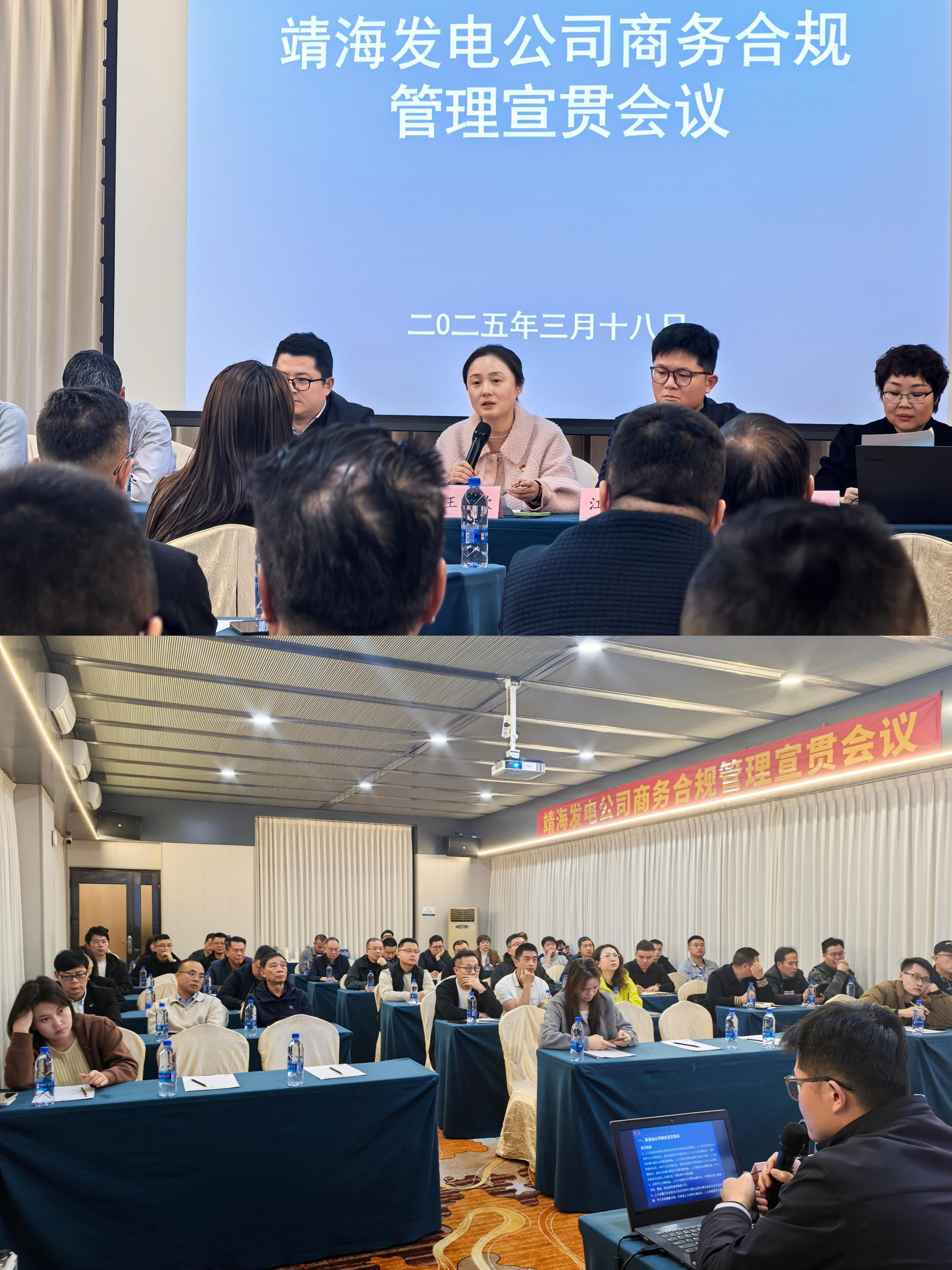 交流会后,在会议室召开了靖海发电公司商务合规管理宣贯会议,受邀请的40家供应商代表、粤东分公司党员代表参会。由靖海发电公司代表江焯烨对新修编合同模板宣贯解读、承包商(供货商)黑灰名单管理办法介绍、通报2024年至2025年黑灰名单等内容,王欢欢随后总结并强调:“本次会议不仅是一场政策宣贯会,更是一场共建阳光采购生态的恳谈会,严守合规底线是前提,促进业务健康发展是目标,希望各单位全力以赴”。