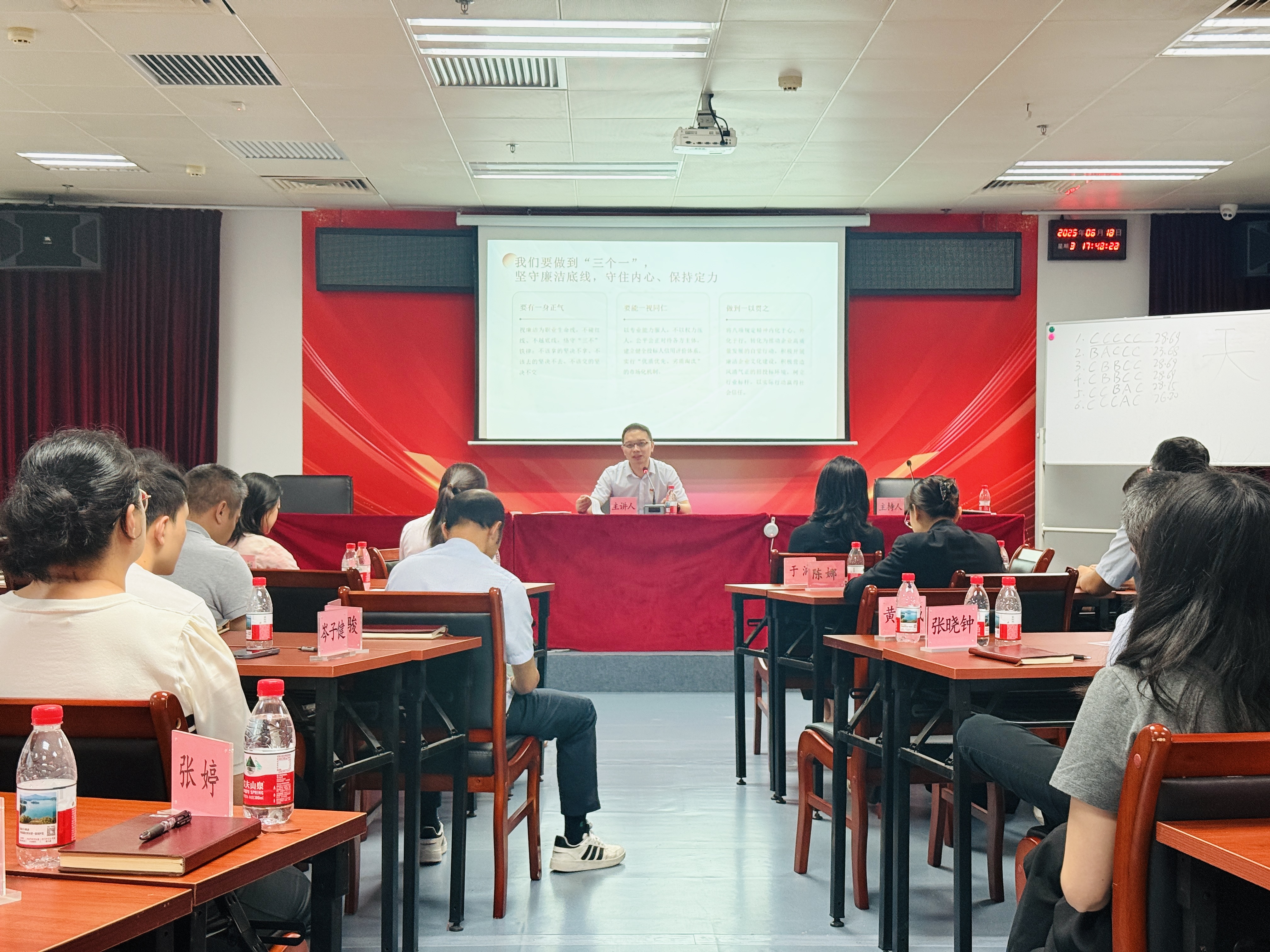 为深入学习贯彻全面从严治党要求,持续巩固风清气正的干事创业环境,6月18日下午,招标中心党总支书记、执行董事、总经理邹吉炎同志以《贯彻落实中央八项规定精神 筑牢招投标领域廉洁防线》为题,为招标中心全体党员干部讲授了一堂主题鲜明、内涵深刻、发人深省的廉洁教育专题党课。