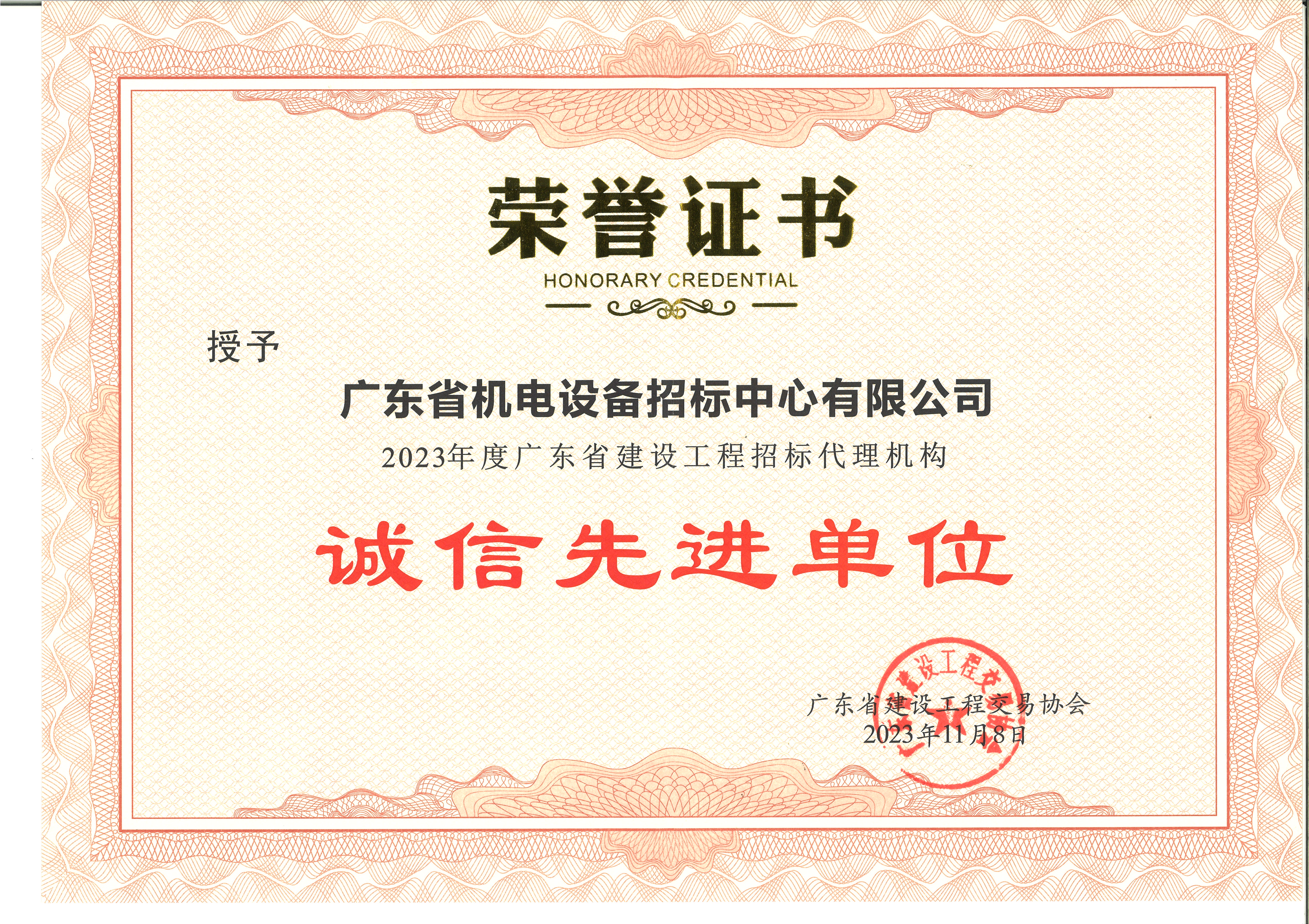 2023年度广东省建设工程招标代理机构诚信先进单位
